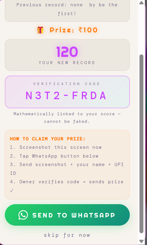 3. Take a screenshot of that popup – it shows your score and a unique Verification Code
