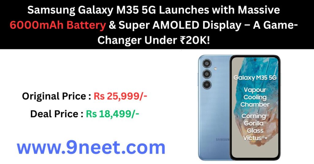 Samsung Galaxy M35 5G Launches with Massive 6000mAh Battery & Super AMOLED Display – A Game-Changer Under ₹20K!.